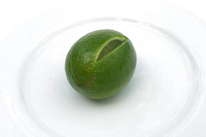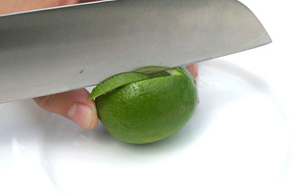 Faça um corte no limão em forma de uma pequena meia-lua, como nas fotos abaixo: