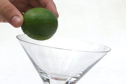 Encaixe o limão na taça e gire-a de forma que a borda fique toda umedecida: