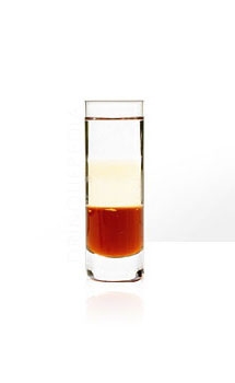 Monte o coquetel em camadas em um copo de Shot, seguindo a ordem dos ingredientes